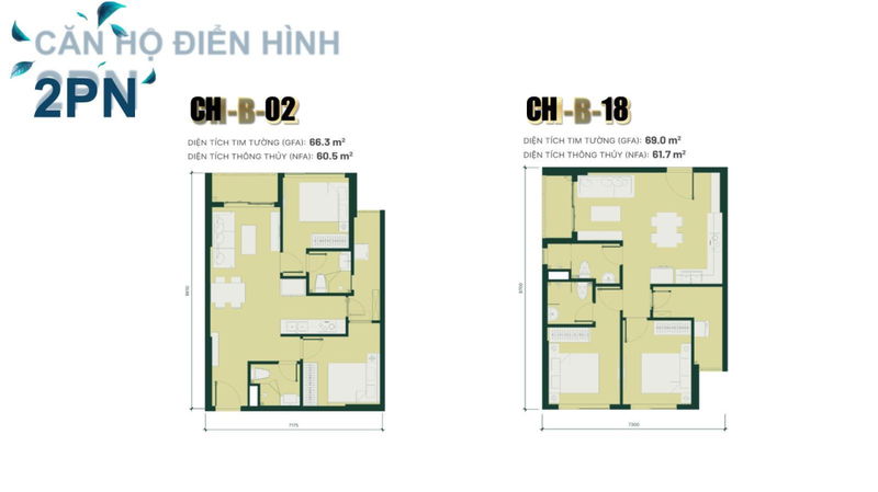 | Charm City (Thuận An) | 2PN | 54 – 60 | 1,7 – 1,9 | 31,5 – 33,3 | Căn hộ mới, tiện ích tốt |