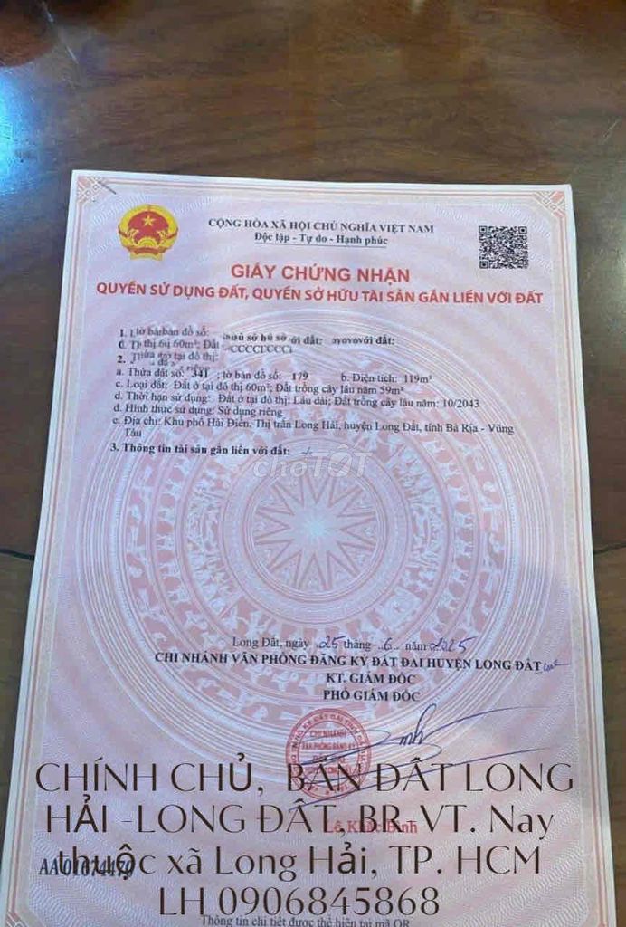 Check giá "[mới sang tên T9/2025] BÁN ĐẤT LONG HẢI – LONG ĐẤT, BR-VT – HCM"