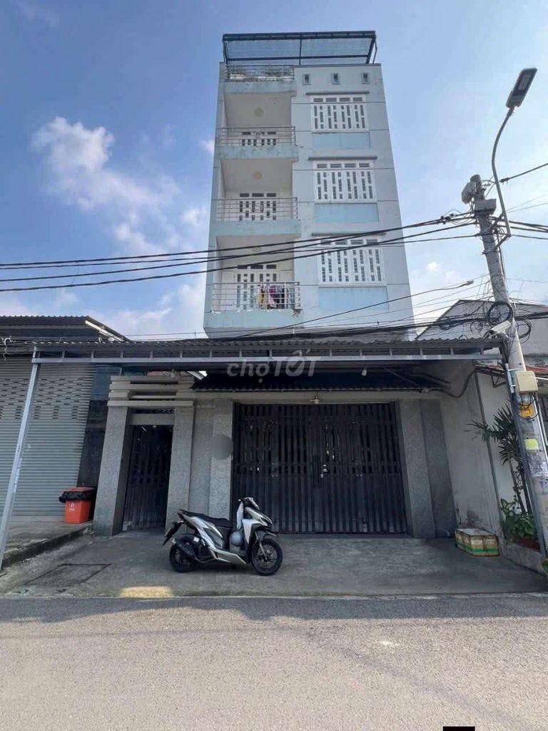 - Kết cấu 5 tầng bao gồm trệt, lửng, 4 lầu với thang máy 450kg, phù hợp cho mục đích làm kho xưởng hoặc văn phòng công ty.