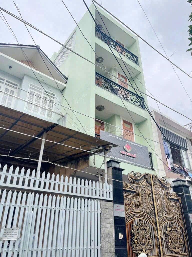 Mô tả:+ Kết cấu: 1 trệt, 2 lầu, sân thượng gồm: 5 phòng ngủ, 5WC, 1 phòng bếp, 1 phòng khách, 1 phòng thờ, sân thượng trước và sau.+ Nhà rất chắc chắn, còn mới đẹp.+ Nhà mặt tiền, tiện kinh doanh, làm văn phòng công ty. + Xe hơi ngủ trong nhà.+ Nhà có 2 giếng trời rất thoáng và sáng sủa. + Sổ nở hậu, phong thủy tốt. + Pháp lý chuẩn, công chứng trong ngày.