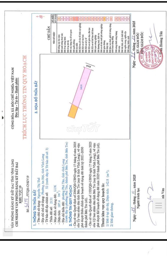 | Đất nông nghiệp chưa thổ cư | Phường Phú Tân, TP. Bến Tre | 187 | 2.5 – 3.5 | 467 – 654 | Giá trung bình khu vực, không hỗ trợ lên thổ cư |
