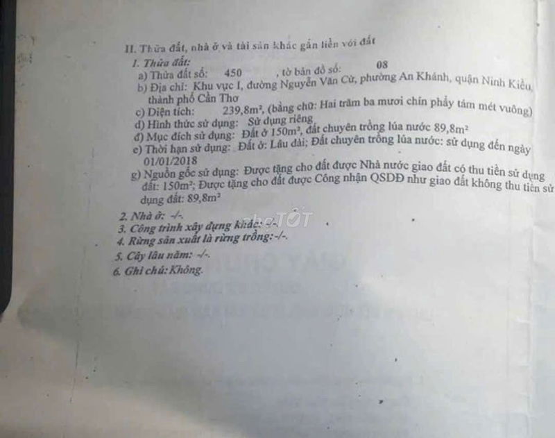 Mức giá 6,9 tỷ đồng cho nền đất 240 m² mặt tiền đường Nguyễn Văn Cừ tại trung tâm Quận Ninh Kiều là khá cao so với mức giá trung bình thị trường. Tuy nhiên, nếu bạn đánh giá cao vị trí mặt tiền, hạ tầng đường nhựa 6m, pháp lý rõ ràng và tiềm năng phát triển khu vực thì có thể xem xét mua với mức giá này.