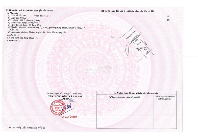 Với diện tích 90m² (6m x 15m), và mức giá 3,8 tỷ đồng, tương đương khoảng 42,22 triệu đồng/m², đây là mức giá không thấp so với mặt bằng chung đất nền tại khu vực Quận Cái Răng, đặc biệt là các lô đất nằm trong dự án hiện đại, có view công viên và hạ tầng đồng bộ.