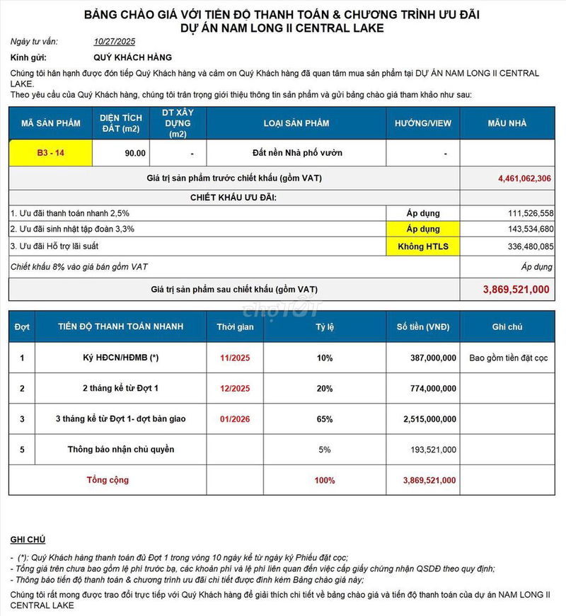 Mức giá 3,8 tỷ đồng cho lô đất này là hợp lý nếu bạn đánh giá cao vị trí, pháp lý và tiện ích đầy đủ. Tuy nhiên, nếu bạn muốn tối ưu chi phí đầu tư và giảm thiểu rủi ro, việc đề xuất mức giá thấp hơn khoảng 3,5 tỷ đồng là khả thi và có cơ sở trên thị trường. Đồng thời, cần kiểm tra kỹ pháp lý cũng như tiến độ hoàn thiện dự án trước khi quyết định xuống tiền.