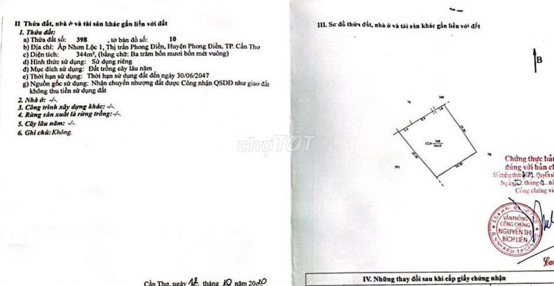 | Ấp Nhơn Lộc 1, Phong Điền | Đất thổ cư | 494 | 2,21 | 1,092 | 2024 | Giá chào bán hiện tại |