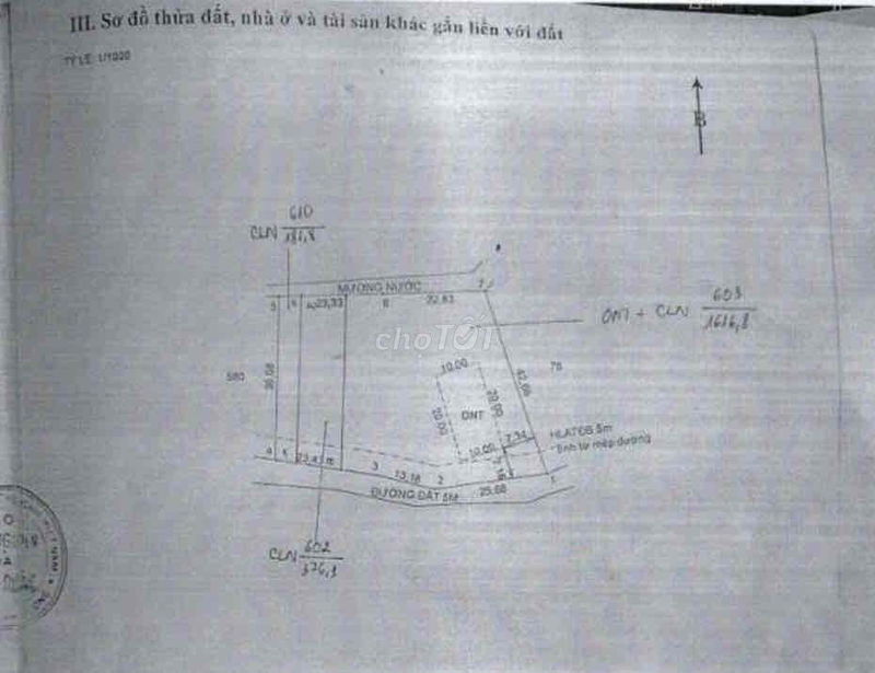 Giá bán hiện tại: 1,093 tỷ VNĐ cho diện tích 1.616,8 m², tương đương 676.026 VNĐ/m².