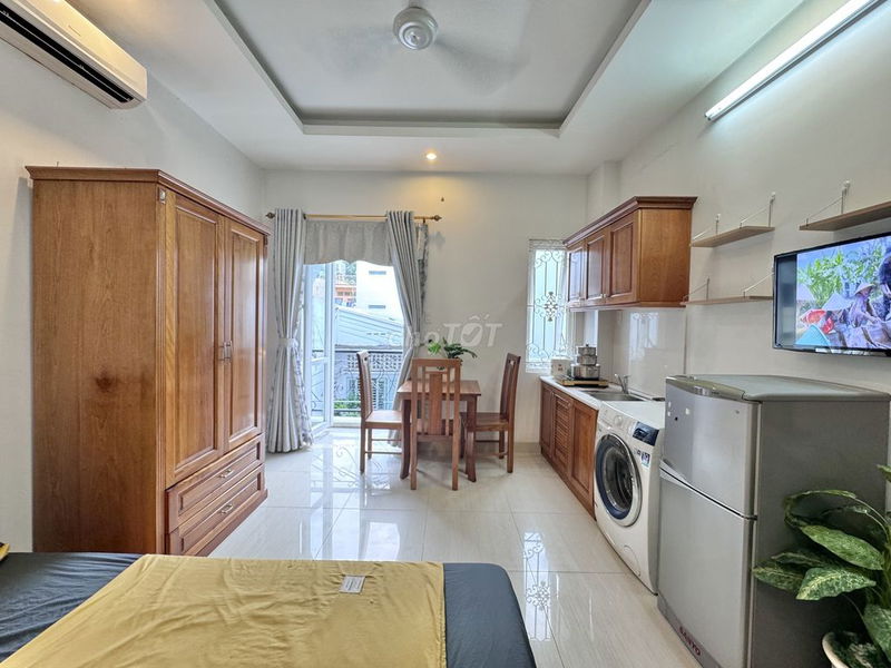 - Phòng có diện tích vừa phải 25 m², phù hợp với người độc thân hoặc cặp đôi không yêu cầu diện tích lớn.