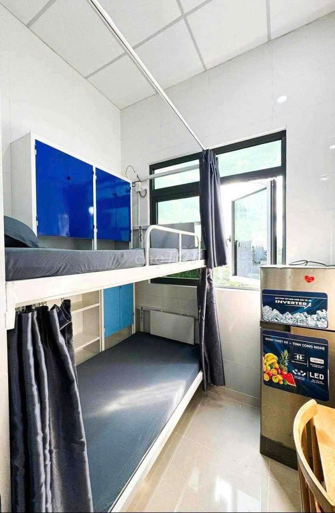 Phòng trọ có diện tích rộng rãi, trang bị nội thất đầy đủ như giường tầng homestay, máy lạnh mở 24/24, máy giặt, máy sấy, bếp nấu ăn riêng, nhà vệ sinh riêng và nhiều tiện ích khác như bảo vệ 24/24, khóa vân tay, vệ sinh và nấu ăn hàng ngày rất phù hợp với tiêu chí phòng trọ cao cấp tại khu vực.