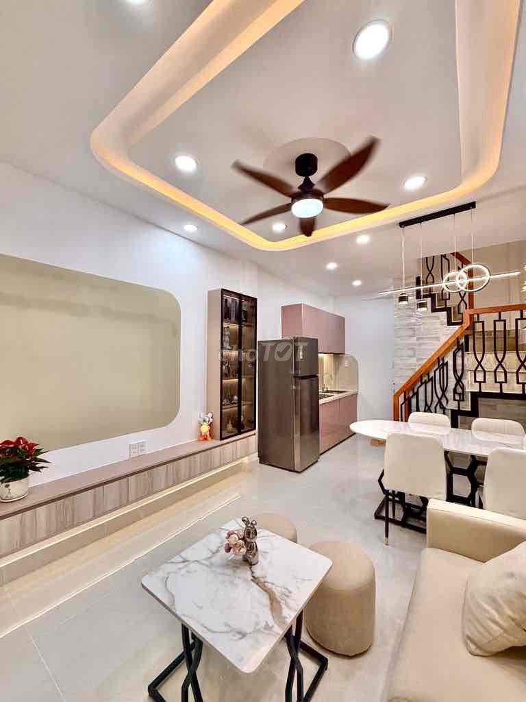 Căn nhà có diện tích đất 20m² (3.1×6.5m), diện tích sử dụng 65m², với kết cấu 1 trệt và 2 lầu kiên cố, gồm 2 phòng ngủ và 3 phòng vệ sinh, nằm trong hẻm 3Gác, cách mặt tiền đường Nguyễn Thượng Hiền khoảng 30m, pháp lý sạch, đã có sổ đỏ (sổ A4), công chứng ngay. Giá chào bán là 4,28 tỷ đồng, tương đương khoảng 214 triệu đồng/m² đất.