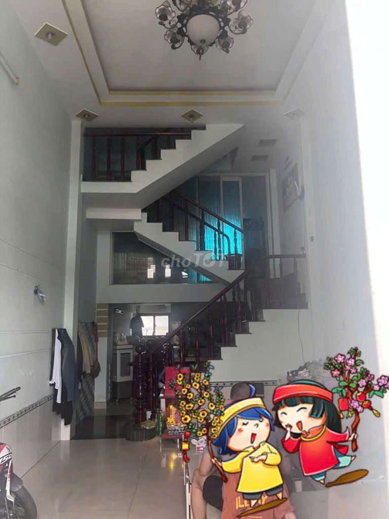 Nhà 1 trệt 1 lửng, 1 lầu: sân để xe, phòng khách, phòng thờ 3 phòng ngủ, 2wc