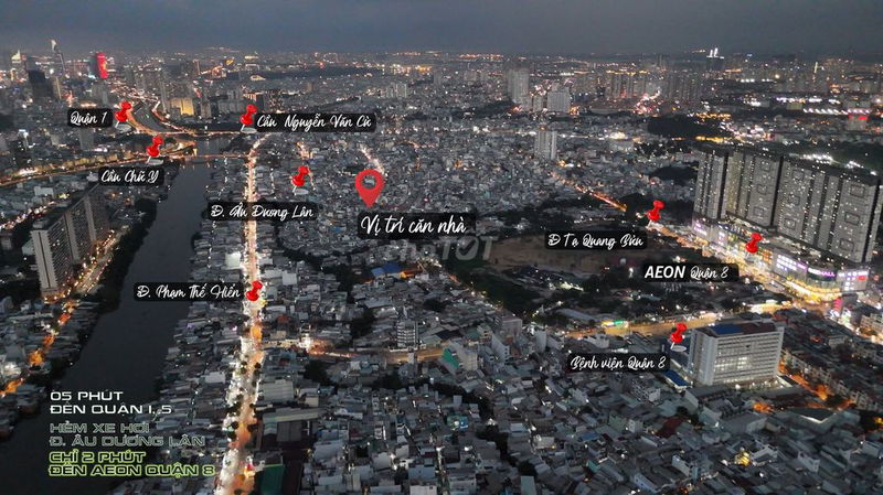 | Vị trí | Hẻm nhựa 6m, gần chân cầu Chữ Y, cách Quận 1 và Quận 5 chỉ 1,8km, cách AEON Mall 600m | Nhà trong hẻm tại trung tâm Quận 8 thường có giá từ 60-90 triệu/m², khu vực gần trung tâm và tiện ích nổi bật sẽ có mức giá cao hơn. | Vị trí rất thuận lợi, giao thông kết nối nhanh tới trung tâm và các tiện ích lớn, giúp tăng giá trị bất động sản. |