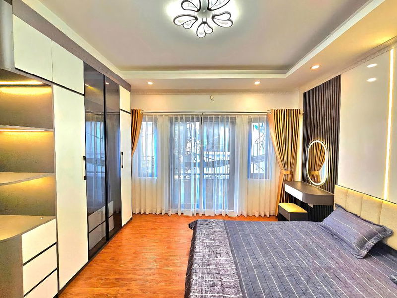 - Diện tích và kết cấu: Diện tích đất nhỏ 32 m², chiều ngang 4 m, chiều dài 8 m, xây dựng 5 tầng với 3 phòng ngủ, 4 phòng vệ sinh, nội thất đầy đủ. Nhà mới xây hiện đại, sân rộng, cổng riêng là điểm cộng lớn. Tuy nhiên, diện tích nhỏ sẽ hạn chế không gian sinh hoạt và tính thanh khoản.