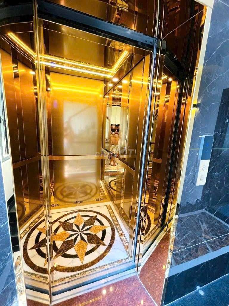 Nhà thiết kế 6 tầng với thang máy Nhật, sân thượng, gara ô tô, 5 phòng ngủ và 6 phòng vệ sinh, nội thất cao cấp, phù hợp với gia đình đông người hoặc có nhu cầu vừa ở vừa kết hợp kinh doanh nhỏ.