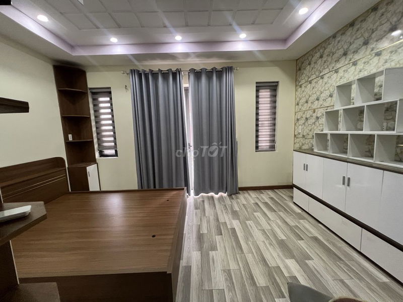 Nhà được thiết kế bởi kiến trúc sư với nội thất cao cấp đầy đủ (TV 55 inch, bếp từ, tủ lạnh 2 cánh, sofa nhập ngoại, máy giặt, máy lạnh), đáp ứng nhu cầu sinh hoạt hiện đại, phù hợp với hộ gia đình tìm kiếm không gian sống sang trọng và tiện nghi. Ngoài ra, nhà có 4 phòng ngủ và 4 phòng vệ sinh, rất thuận tiện cho gia đình nhiều thành viên hoặc người cần không gian làm việc riêng.