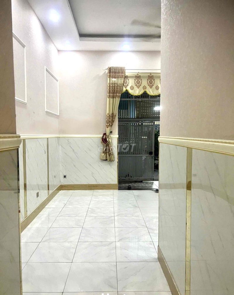 Căn nhà có diện tích đất 80m², chiều ngang 5m, chiều dài 16m, thuộc dạng nhà trong hẻm xe hơi, với đầy đủ các tiện nghi cơ bản như phòng khách, bếp, 2 phòng ngủ, sân để xe và nhà vệ sinh, cùng vị trí thuận lợi gần chợ Tân Long, trường học và Vincom Plaza chỉ cách 1km.