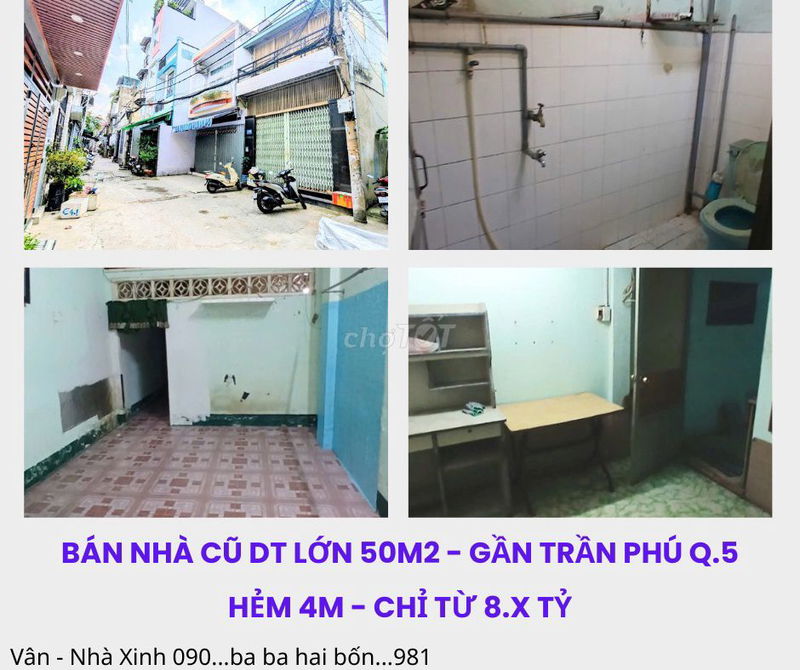 Check giá "NHÀ CŨ DT 60M2 TIỆN XÂY MỚI – TRẦN HƯNG ĐẠO Q.5 – HẺM 6M OTO – 8.x TY"