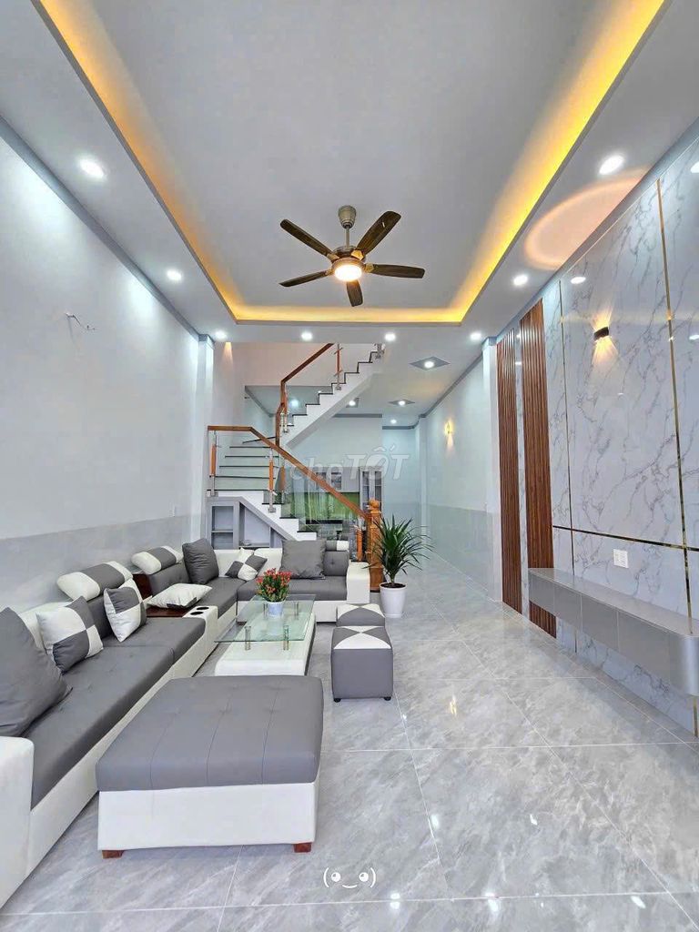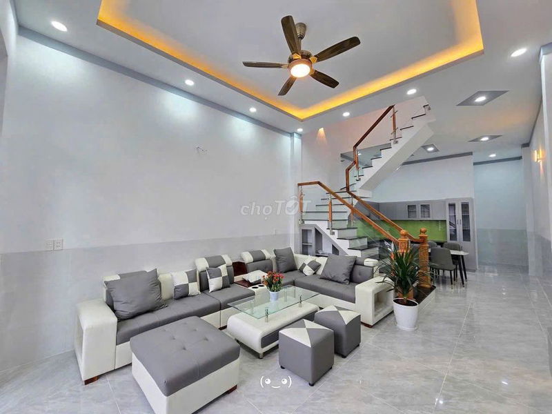 Nhà có kết cấu kiên cố 1 trệt 1 lầu, 3 phòng ngủ, 2 toilet, nội thất cơ bản nhưng sạch sẽ, pháp lý sổ hồng riêng rõ ràng, thổ cư 100%, sang tên công chứng nhanh cũng là điểm cộng lớn giúp tăng độ tin cậy và giảm rủi ro khi mua.