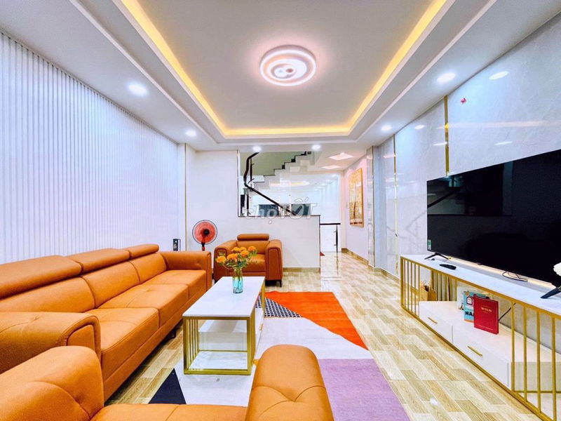 Nhà phố 4x14m, diện tích đất 54m², xây 3 tầng (trệt + 3 lầu theo mô tả nhưng thực tế là 3 tầng tổng), với nội thất cao cấp cho thuê 17 triệu/tháng tại Quang Trung, P.10, Gò Vấp.
