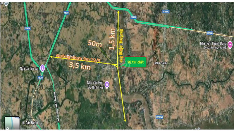 | Lô đất mặt tiền đường Trần Văn Giàu, Cần Đước | 250 | 1,8 | 7,2 | Đường rộng 7m | Chưa có nhà hoàn công |