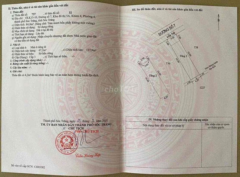 -> Diện tích: 4.2 x 20 = 84m², DTSD: 137.9m²