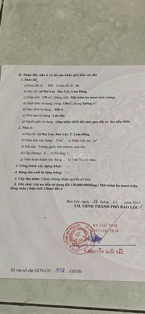 | Giá trên m² sử dụng | 16,67 triệu/m² | Giá này nằm ở mức cao so với mặt bằng nhà đất tại Bảo Lộc, nhất là các khu vực ngoại thành hoặc vùng xã. |