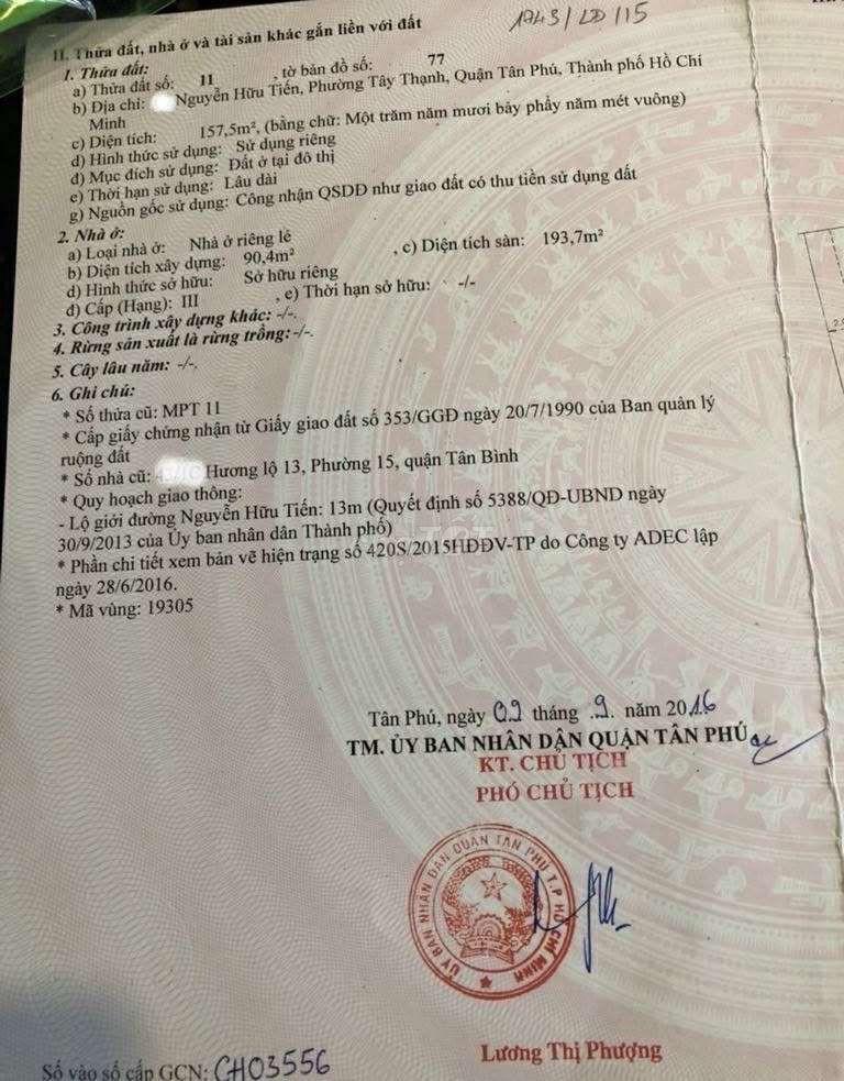 | Đường Chế Lan Viên, Q. Tân Phú | 155 | 19 | 122,58 | Nhà mặt tiền, gần ngã 3, kinh doanh tốt |