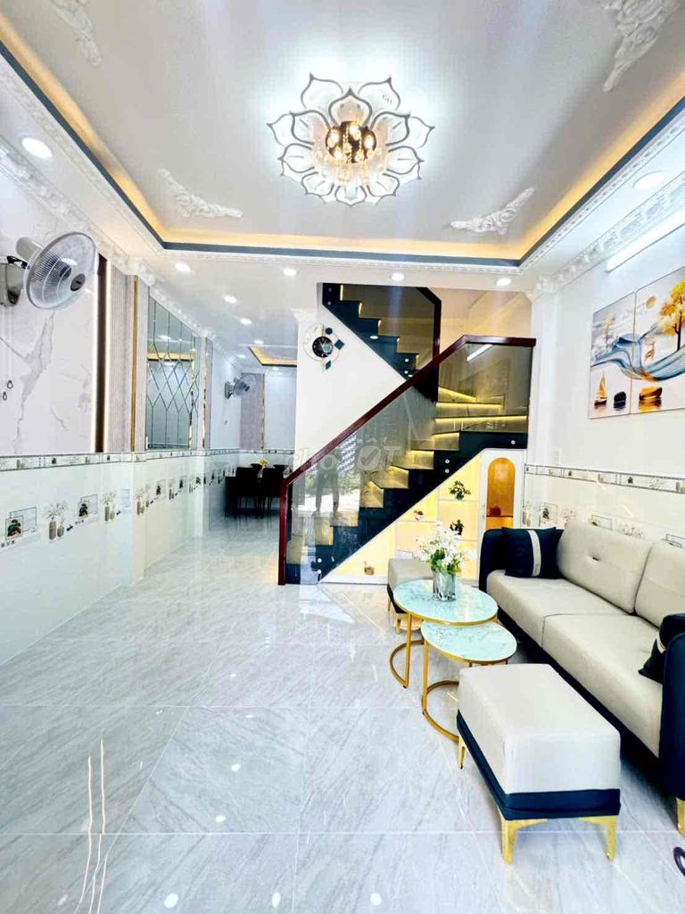 - Nội thất: Hoàn thiện cao cấp với cửa nhôm Sifa, cầu thang đá hoa cương, kính cường lực, tặng kèm máy lạnh Inverter, máy nước nóng năng lượng mặt trời, sofa, bàn ăn,… Đây là điểm cộng lớn nâng giá trị căn nhà.