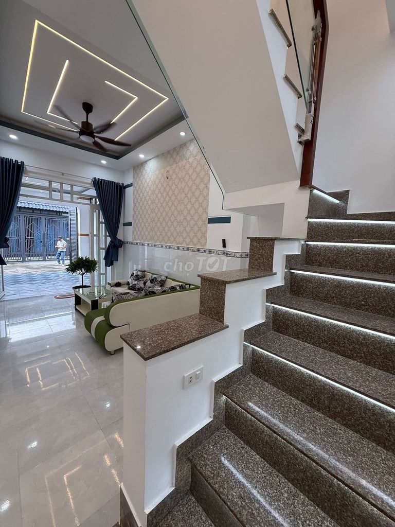 - Diện tích và thiết kế: Diện tích đất 54 m² và diện tích sử dụng 100 m² với kết cấu 1 trệt 1 lầu, 3 phòng ngủ, 2 phòng vệ sinh, nội thất cao cấp, có sân để xe và ô giếng trời, phù hợp với nhu cầu gia đình vừa và nhỏ.