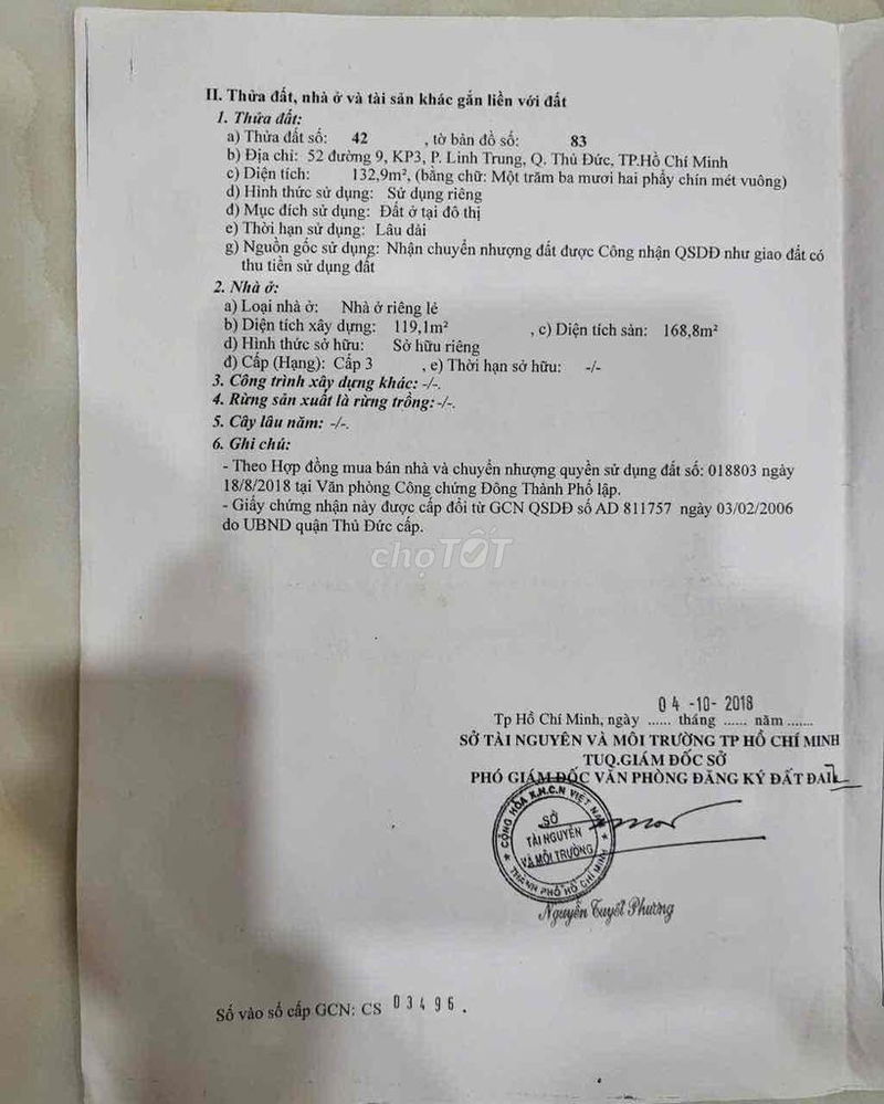 | Tiêu chí | Thông tin nhà đang bán | Giá thị trường tham khảo (tại Phường Linh Trung, TP Thủ Đức) | Nhận xét |