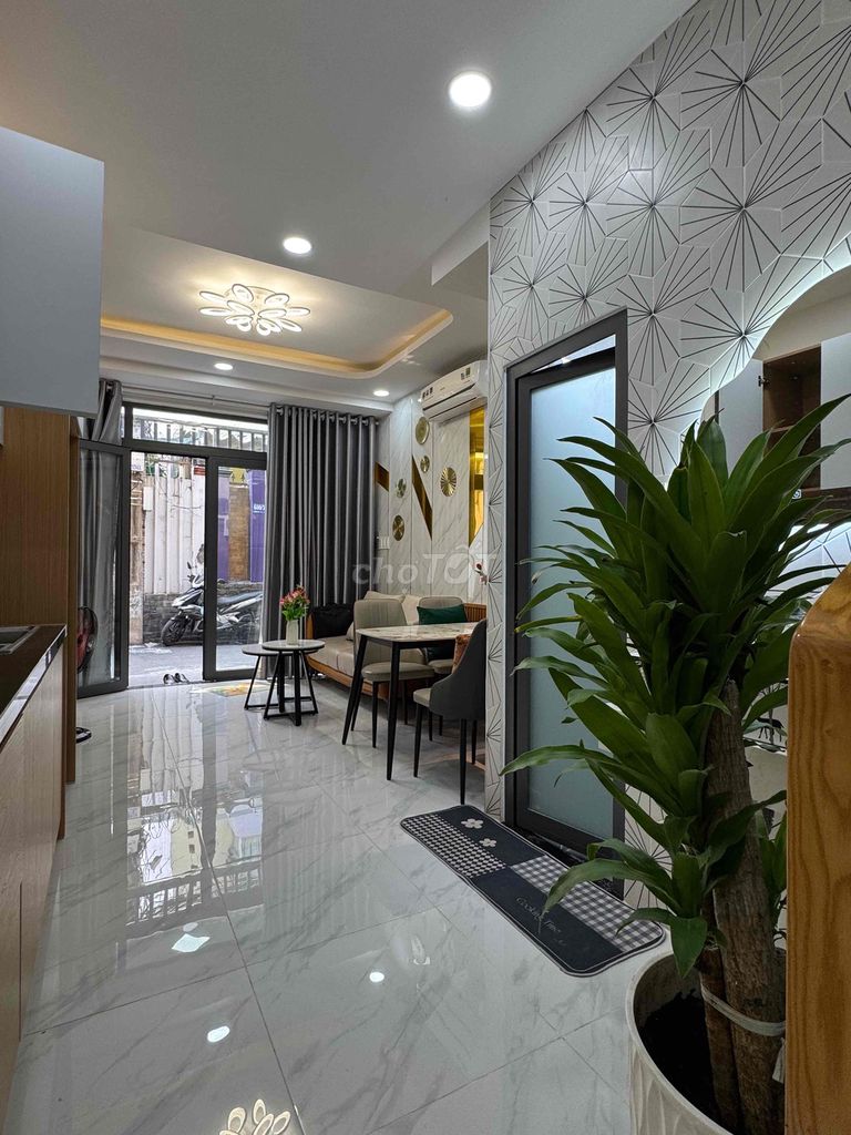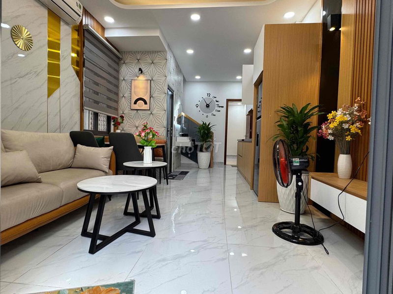 - Mặc dù nhà mới và nội thất đầy đủ, nhưng diện tích đất chỉ 46 m², mặt tiền hẹp 3,8 m, nhà nở hậu nên có thể ảnh hưởng đến không gian sinh hoạt và ánh sáng.