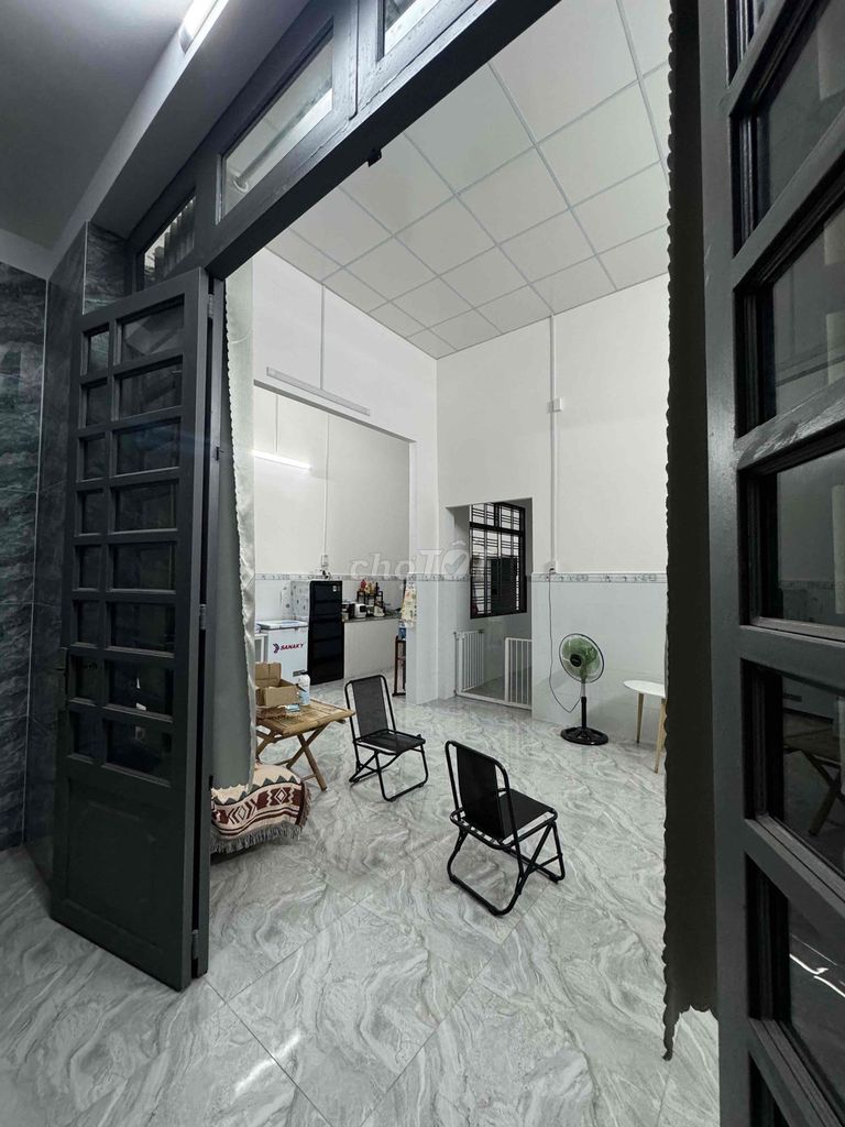 Điểm cộng lớn là nhà mới hoàn thiện 100%, sân rộng có mái che, cửa cuốn và cửa sắt, không khí thông thoáng và khu vực an ninh tốt, tuy nhiên các tiện ích xung quanh như giao thông, dịch vụ chưa được đề cập rõ ràng để làm tăng giá trị cho mức giá này.
