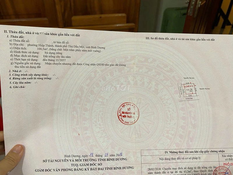 | Phường Hiệp Thành, TP. Thủ Dầu Một | 105 | 3,4 | 32,4 | Nhà 2 tầng, lô góc, full nội thất | 2024 Q1 |