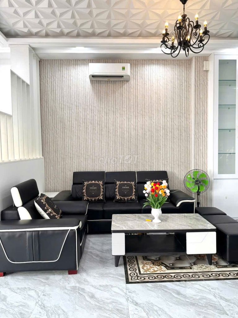 DT: 5x16m, 1 trệt 2 lầu + sân thượng, có 4PN, full nội thất, 5WC, gara xe, phòng thờ, điện nước nhà nước, không gian yên tĩnh mát mẻ.