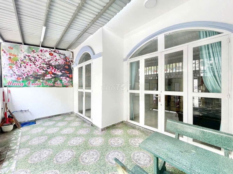 Nhà 1 trệt 1 lầu: Sân xe máy, phòng khách, bếp, 3 phòng ngủ, 2wc