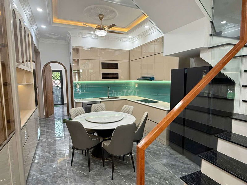 - Nhà xây dựng hoàn thiện 1 trệt 3 lầu với tổng diện tích sử dụng rộng 200 m², phù hợp cho gia đình nhiều thế hệ hoặc đầu tư cho thuê.