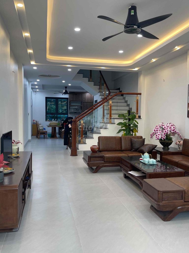 Căn nhà xây móng cột bê tông kiên cố, có ô chờ thang máy, nội thất cao cấp, 5 phòng ngủ và 4 phòng vệ sinh, vị trí gần trường học và tuyến đường giao thông lớn như Vành đai 3.5, Quốc lộ 32 là những điểm cộng đáng giá.
