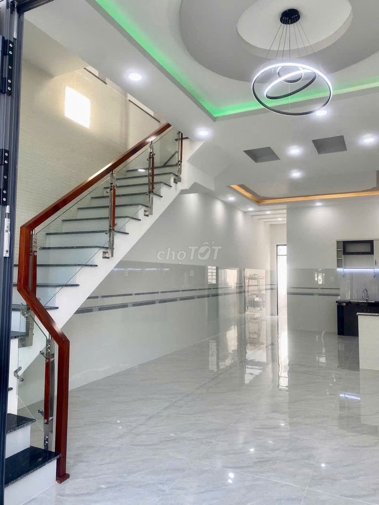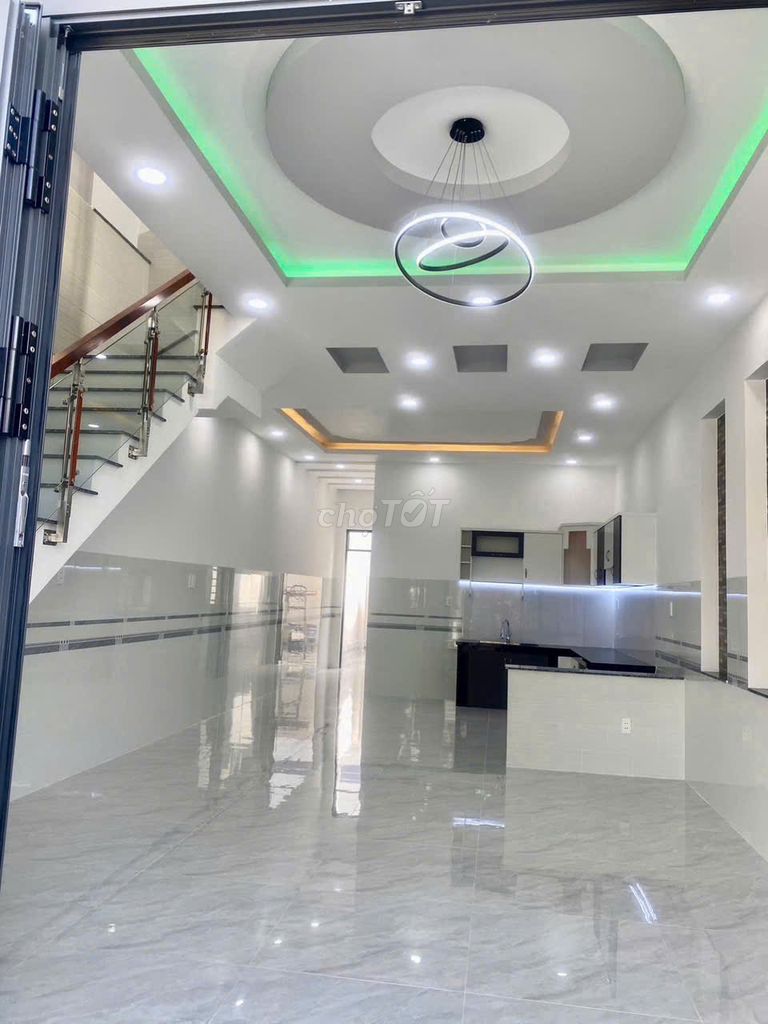 Đây là căn nhà có mặt tiền 5 m, chiều dài 18 m, kết cấu 1 trệt 1 lầu với 2 phòng ngủ, 2 nhà vệ sinh, nội thất cao cấp và sân để ô tô riêng, phù hợp với gia đình nhỏ đến trung bình. Vị trí gần chợ, trường học, siêu thị và khu dân cư đông đúc tạo điều kiện thuận lợi cho sinh hoạt và tiềm năng phát triển giá trị bất động sản.