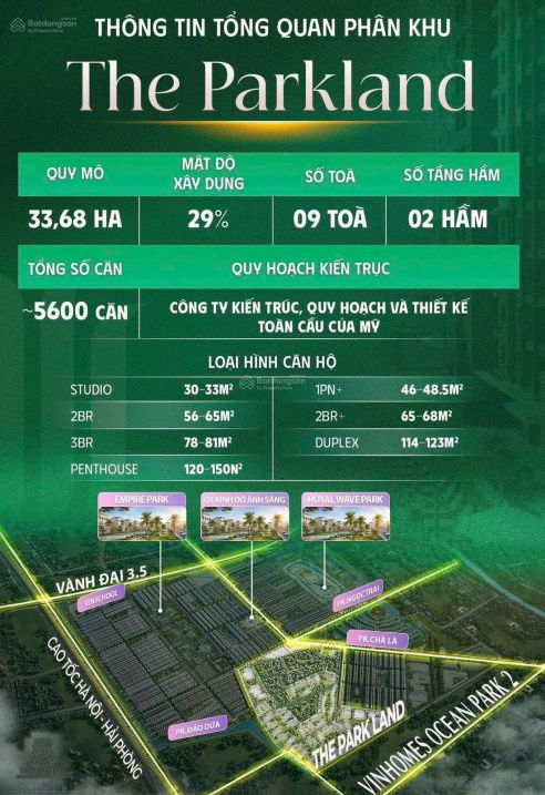 | The ParkLand – Imperia Ocean Park 2 | Hưng Yên | 46 | 1 phòng ngủ | ~60 | 2,76 | 2024 |