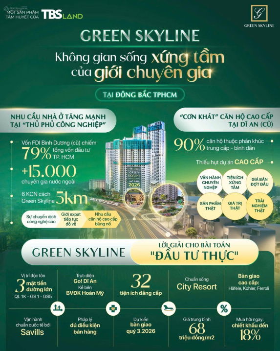 Căn hộ 2 phòng ngủ diện tích 70,67 m² tại dự án Green Skyline, tọa lạc trên trục đại lộ Phạm Văn Đồng, phường Đông Hòa, Dĩ An, Bình Dương. Dự án có vị trí giao thông thuận tiện, kết nối nhanh đến sân bay Tân Sơn Nhất và Long Thành, cùng các tiện ích công cộng lân cận như chợ Thủ Đức, bệnh viện Hoàn Mỹ, trung tâm hành chính Dĩ An và Đại học Quốc Gia Thủ Đức.