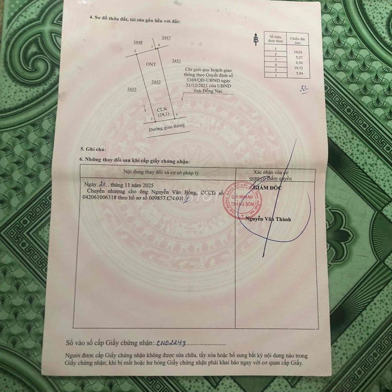 | Tiêu chí | Lô đất đang xét | Đất nền tại Thị trấn Trảng Bom (Tham khảo 2024) |