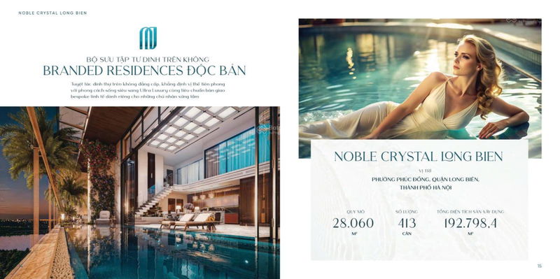 | Sky Villa Noble Crystal (4PN) | 240 | 158 | 37.92 | Full nội thất cao cấp, bể bơi riêng, thang máy riêng |