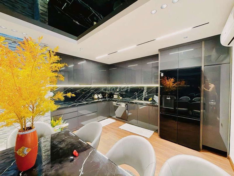 Kết cấu: 8 tầng thang máy, gara ô tô 3 chiếc, mỗi tầng 2 phòng rộng