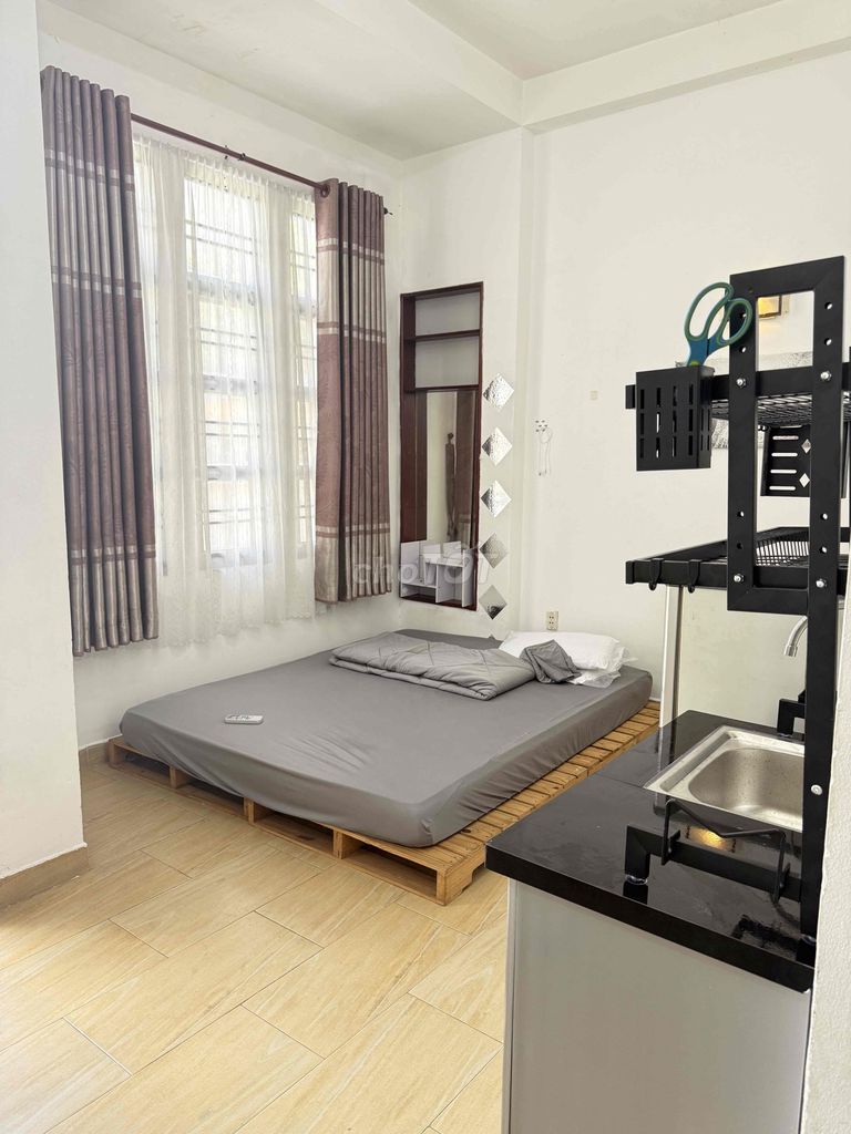 | Nội thất và tiện nghi | Máy lạnh, tủ lạnh, máy giặt riêng, ban công, cửa sổ lớn, tủ bếp, bồn rửa chén, giường nệm gỗ pallet | Phòng cơ bản, ít có máy giặt riêng, không có ban công hoặc nội thất cao cấp |