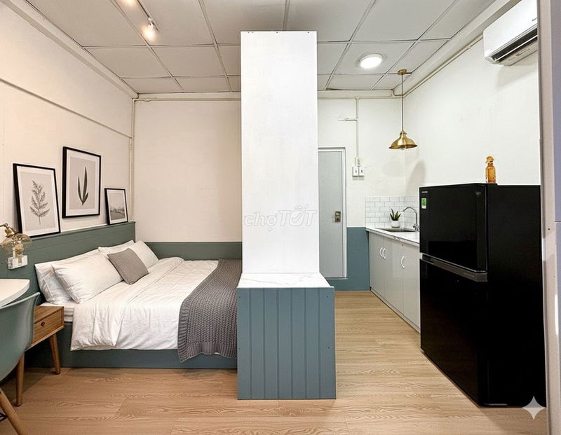 - Phòng đầy đủ nội thất, tiện nghi với WC kính ngăn mùi, quạt hút mùi bếp – điểm cộng về chất lượng sống.