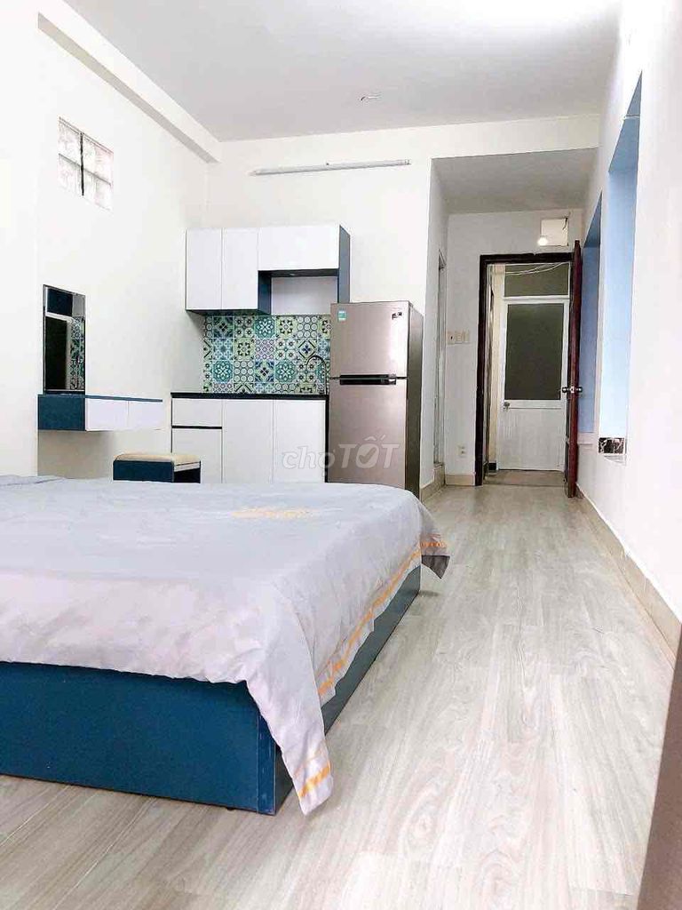 - Full nội thất và thiết kế studio: phòng rộng rãi 25m² có bếp riêng, bàn làm việc, ban công thoáng sáng, đáp ứng nhu cầu ở thực hoặc làm việc tại nhà.