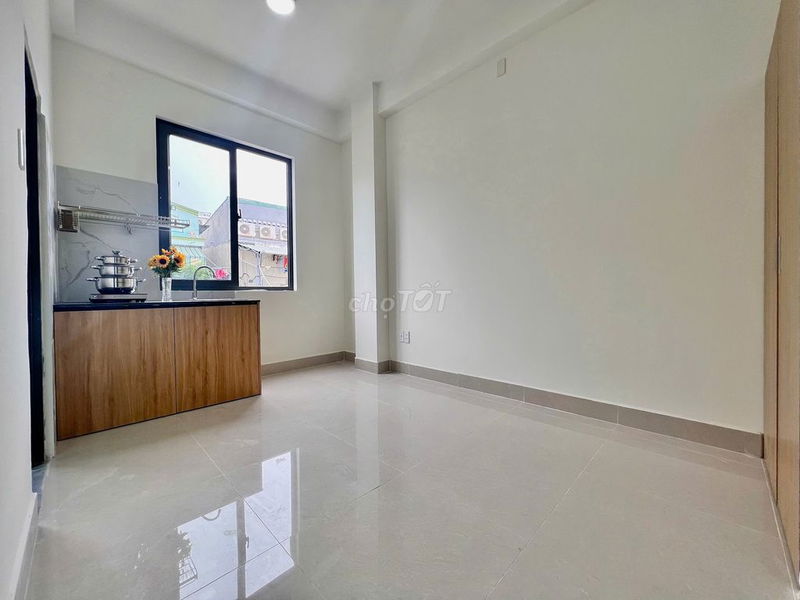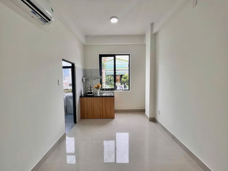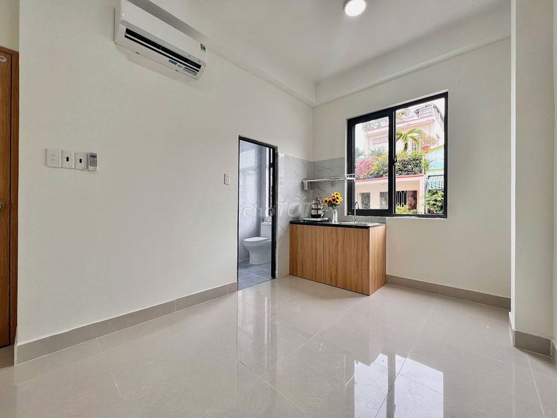 Phòng có diện tích khá rộng cho một phòng trọ (30m²), trang bị nội thất đầy đủ như tủ áo, bếp, điều hòa, máy nước nóng lạnh, đi kèm các tiện ích như dọn phòng tuần/lần, giữ xe rộng rãi, hệ thống PCCC, camera an ninh và dân trí cao. Vị trí thuận lợi gần các quận trung tâm như Quận 1, 3, Phú Nhuận và Tân Bình cũng là điểm cộng lớn.