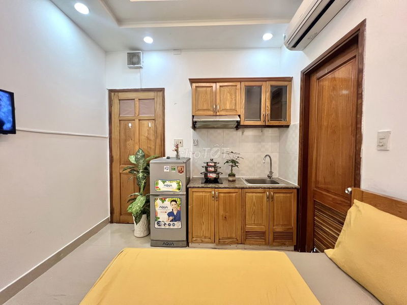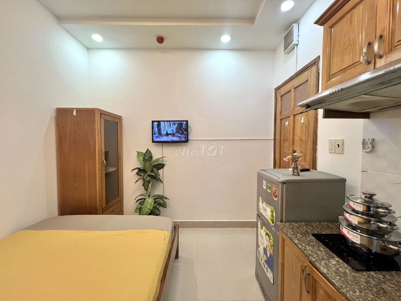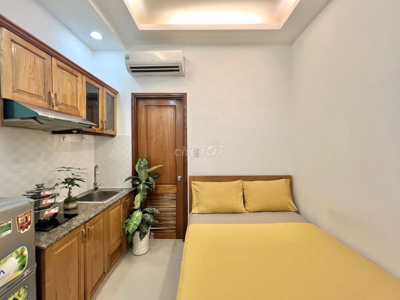 Phòng trọ có diện tích 25 m², nằm tại vị trí trung tâm Quận 1, Tp Hồ Chí Minh, được trang bị đầy đủ nội thất hiện đại như máy lạnh, tủ quần áo kính, góc bếp kèm tủ lạnh và hút mùi. Giá thuê đề xuất là 4,2 triệu đồng/tháng.