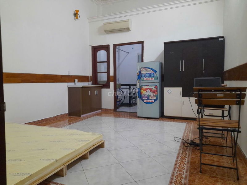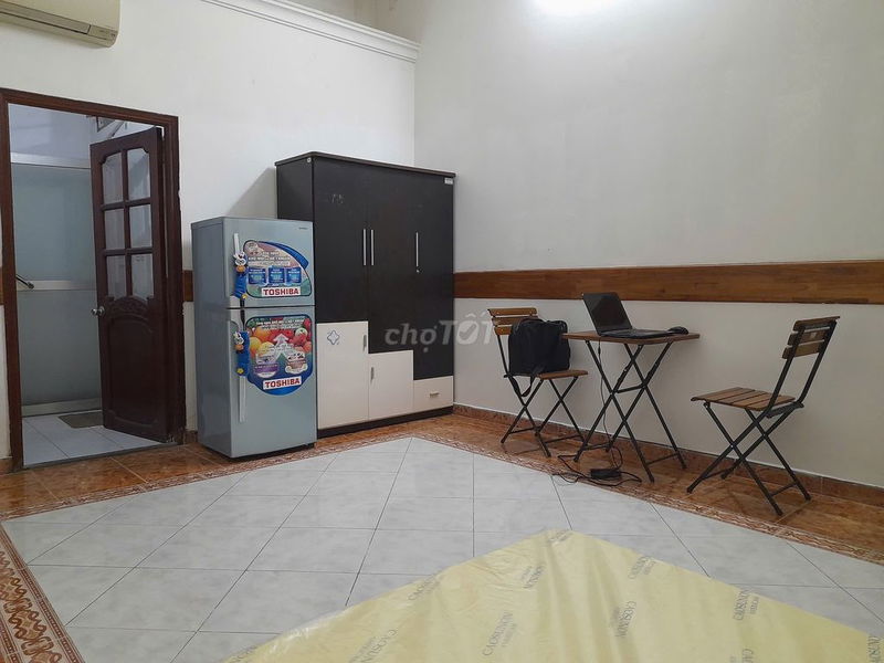 Phòng trọ có diện tích rộng rãi 30m², trần cao thoáng, cửa sổ lớn đón ánh sáng tự nhiên, phù hợp với nhu cầu sống thoải mái. Đặc biệt, phòng được trang bị đầy đủ tiện nghi cao cấp: máy lạnh, tủ lạnh, tủ quần áo, tủ bếp gỗ, và máy giặt riêng trong phòng – điểm nổi bật so với nhiều phòng trọ thông thường.