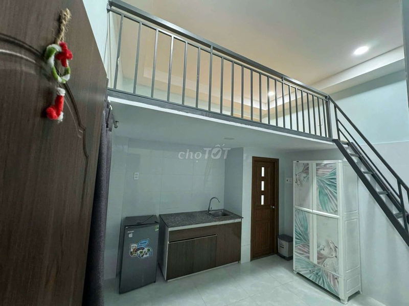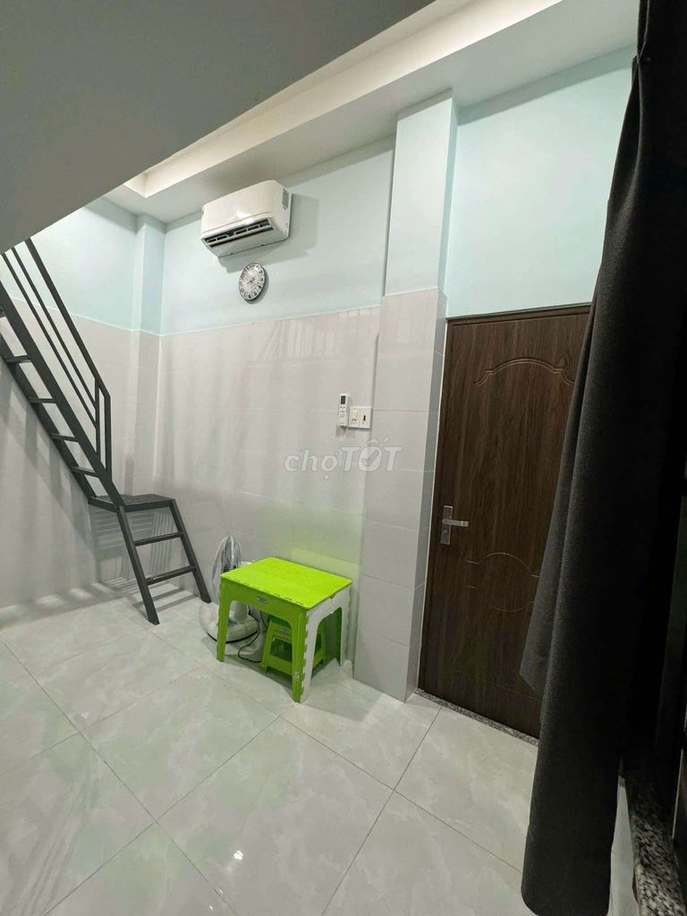 Phòng có trang bị máy lạnh, bếp, tủ áo và gác xép, thuộc khu vực an ninh, có cửa vân tay, thuận tiện cho sinh viên và viên chức. Tuy nhiên, vị trí tại 33/2 Nguyễn Thị Nhỏ, Phường 9, Quận Tân Bình không nằm trong khu vực trung tâm hoặc có tiện ích cao cấp đặc biệt, mà thường có mức giá thuê thấp hơn các quận trung tâm như Quận 1, Quận 3 hay Phú Nhuận.
