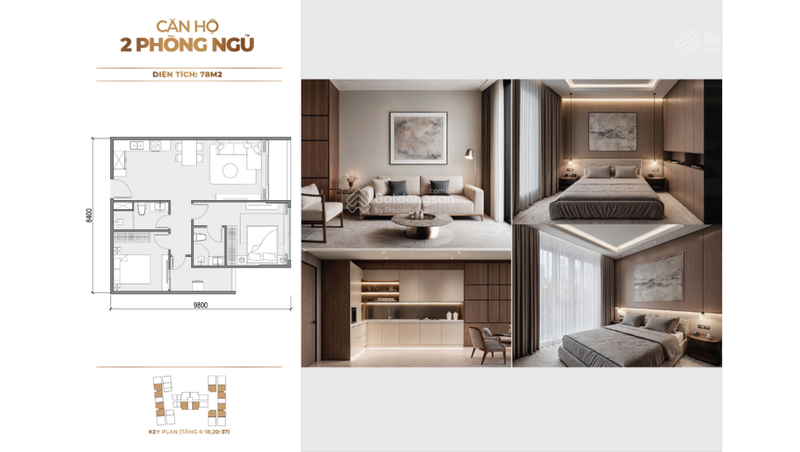 | Diện tích căn hộ | 70 m² (2PN) | 65 – 75 m² (2PN phổ biến) |